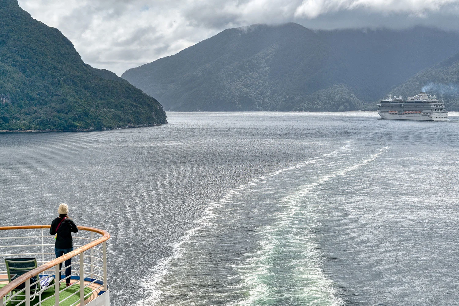 On our way out of Doubtful Sound we crossed paths with another Princess ship, the one that runs from Sydney to New Zealand and back to Sydney. That ship took the opposite route around New Zealand than we did, so they were on their last day in NZ while we were just starting our NZ adventure.