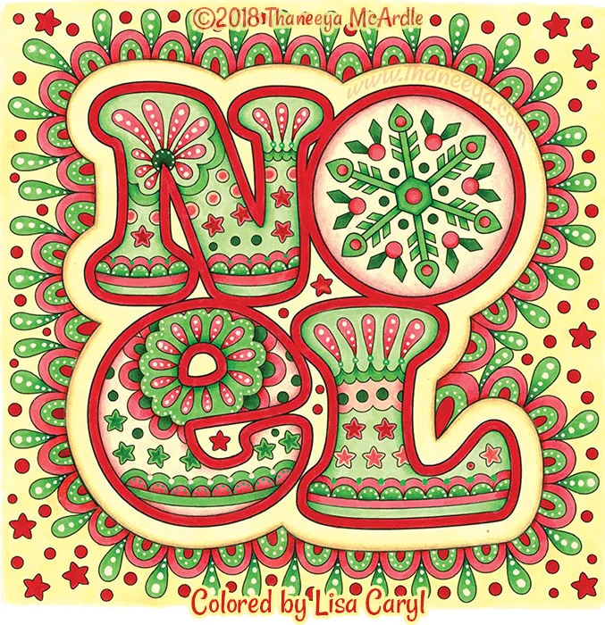 You can also scroll down to see a some examples of how other people have colored these Christmas pages in the Holiday Cheer Coloring Gallery!