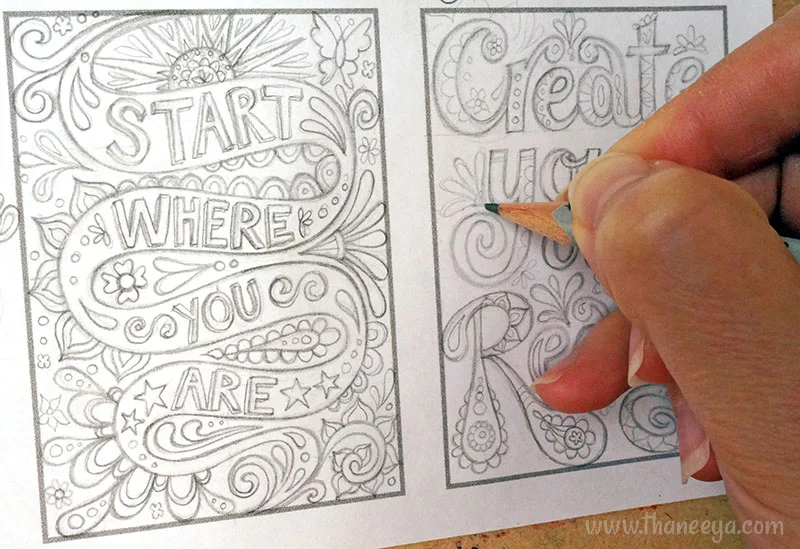 I love creating these little reminders of positivity. Whenever I see or hear a phrase that begs to be illustrated, I note it down in my ever-growing list. So far I have illustrated over 100 positive phrases, but there are still dozens more on my lengthy list waiting to be become works of art! Most of my illustrated positive phrases are still in B+W form, waiting for me to brighten them up with color. You can color in my positive phrases too - check out my coloring books below!