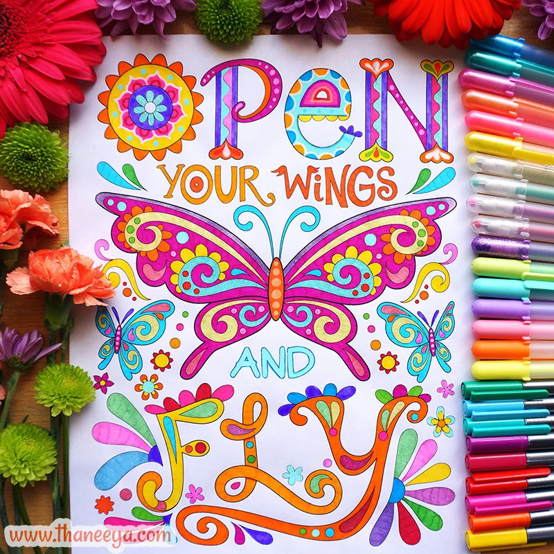 My hand-lettered illustrations of positive phrases combine art and optimism in a vibrant celebration of color and detail!